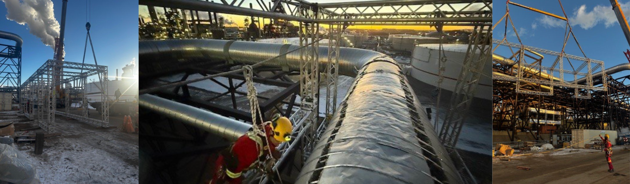 The MILO system enabled controlled suspended access with a minimal footprint, allowing technicians to safely reach the tail gas line while reducing installation time and congestion in the operating area. Rope access techniques were used to investigate, repair, and reinstate the affected section of MI electric heat trace.